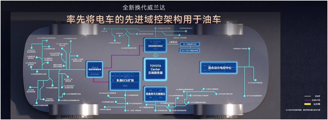 作为丰田全新电子电气架构的首款车型,换代威兰达凝聚了丰田在油车技术领域的前沿科技,以原汁原味的全球车外观、首发TSS4.0丰田最新一代智能驾驶辅助系统、丰田首款专为中国用户研发的智能座舱、第五代智能电混双擎首款四驱,开启一场大刀阔斧式的“自我革新”,推动油车进入域控时代,直接定义“下一代油车”。