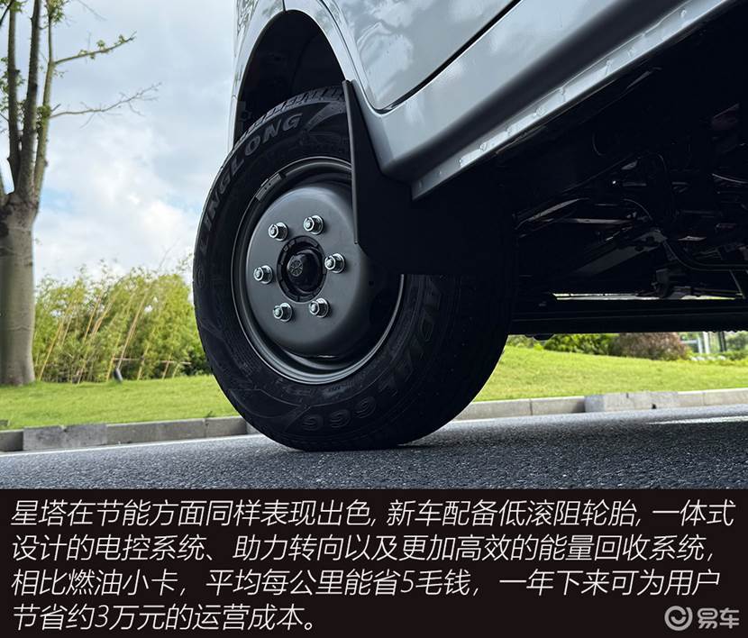 星塔的安全配置也很丰富,像ESC车身稳定系统、AEB自动紧急制动、前碰撞预警、车道偏离预警、胎压监测、电池监测以及倒车影像等乘用车级别的安全配置一应俱全。