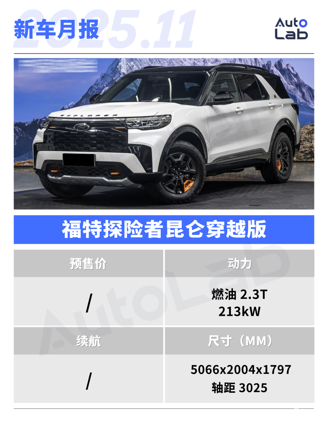 福特探险者昆仑穿越版是探险者新增的车型版本,采用了大五座的布局。
