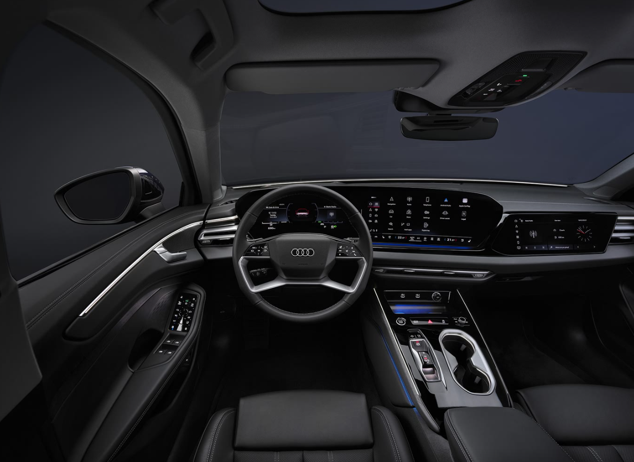 新一代奥迪A6L的内饰细节并未完全透露,作为参考,海外版的奥迪A6采用了奥迪家族最新内饰设计语言,车内配备了11.9英寸的全液晶仪表盘,和14.5英寸的中控屏,搭配10.9英寸的副驾娱乐屏,三屏联动,赋予智能驾驶座舱满满的科技感,而且车机支持应用下载、苹果端手机互联映射、全场景语音交互等功能。其次,车内还配备了W-HUD抬头显示系统,它能将如车速、车况、路况等各种核心信息投射到前挡玻璃上,避免了低头看仪表盘带来的不便。