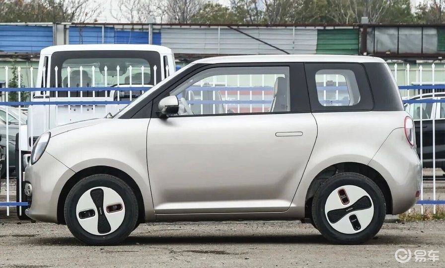 车身尺寸为3293/1700/1545mm,轴距1980mm,采用3门4座布局,与现款一致。细节上,新车未采用悬浮式车顶,轮毂罩换为糯芯白样式(替代十字徽章轮辋罩),后制动器由实心盘式改为鼓式,为入门版核心配置差异。