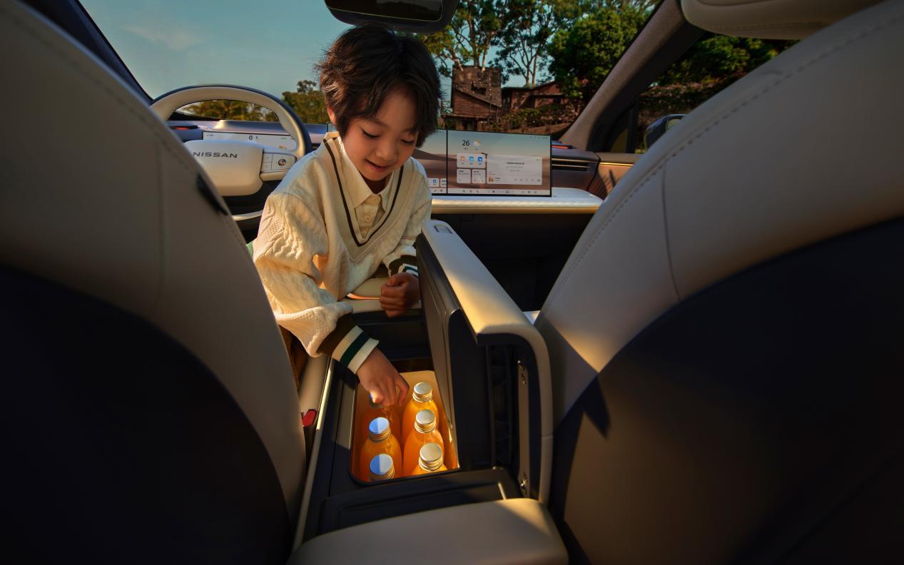 此外,在舒适性方面,该车主驾搭载了AI零压云毯座椅2.0,高精度传感器升级为53个,新增肩部、臀部的自适应支撑点位,能够实时探测全身压力变化,精准调节每一个气囊的支撑力;此外,新车的后排还拥有133度电动大躺椅,前后排标配电动调节、通风、加热、按摩功能。更为难得的是,新车还配备后排拓展屏(AI彩电)、6.33L冷暖箱(AI冷暖箱)、25扬声器Nissan Sound音响系统(功率2000W,7.1.6.2声道布局)以及AI空调组成AI舒享五件套。