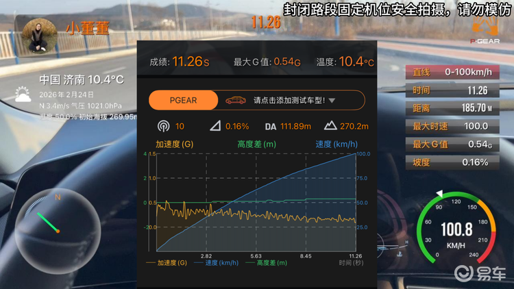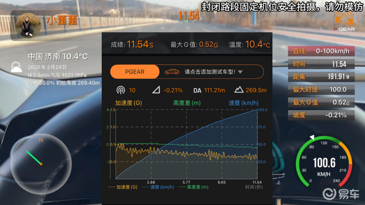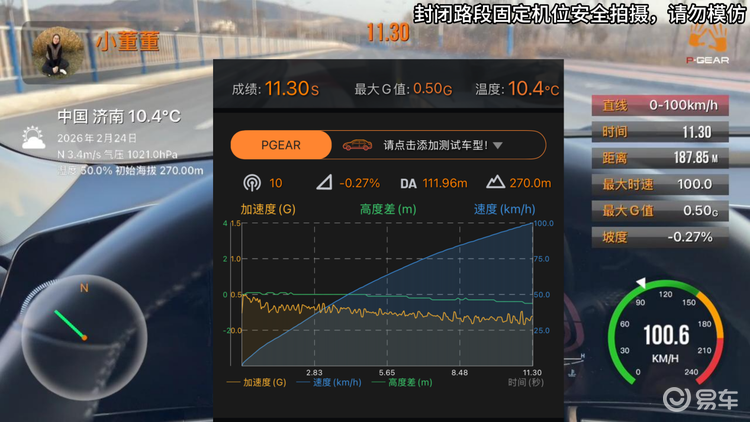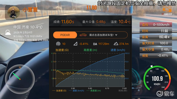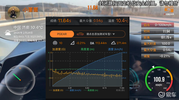 先来一次正常情况下的地板油吧,空调咱不开,ESP防滑也不关,车上就我自己,模拟正常开车时的地板油 超车加速情况。