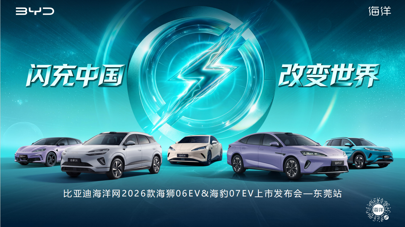 此次比亚迪海洋网 2026 款海狮 06EV & 海豹 07EV 东莞上市发布会的成功举办,不仅为东莞消费者带来了两款兼具科技感与实用性的纯电车型,更以 “闪充技术” 为核心,展现了比亚迪在新能源领域的技术积淀与创新实力。作为全球新能源汽车行业的领军品牌,比亚迪始终以科技创新为核心驱动力,此次双车上市,既是比亚迪海洋网在华南市场的重要布局,更是其践行 “闪充中国,改变世界” 愿景的具体行动。