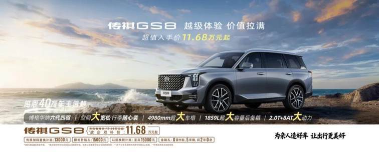 传祺GS8领航系列用“入门即高配”的诚意,把超大空间、越级安全、丰富舒适配置全部塞进了12万的价格区间,让“大”和“豪”不再需要高昂的预算来交换。
