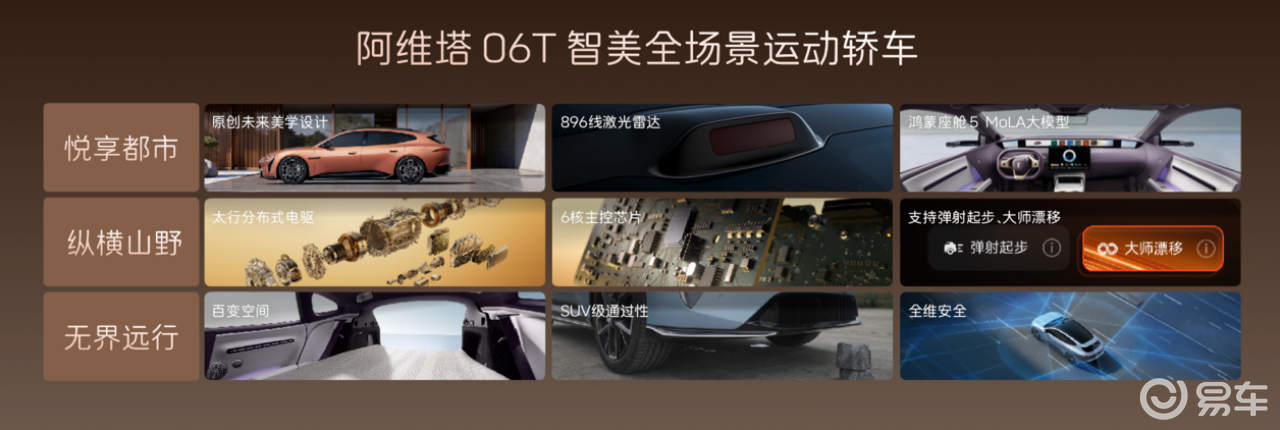 阿维塔06T以"未来运动美学、满血智能驾控、全维安全防护、百变灵活空间"四大核心优势,为生活先锋打造25万级全能出行座驾。