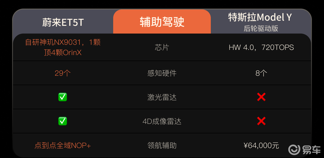 - Model Y 如果要选装高阶辅助驾驶,一定要算好预算,64000 元的选装费,直接把车价拉到 32 万 +,不如直接上 ET5T;