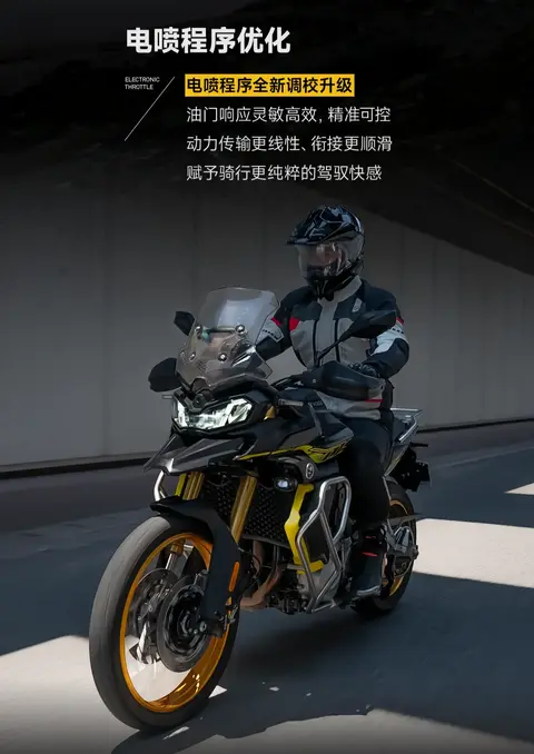 除了上述更新外,DS900X强大的电控也处于国产顶级行列,全彩的TFT仪表拥有四种驾驶模式(道路、雨天、运动、越野)。同时电子油门也让其拥有全功能的TCS、弯道ABS、定速巡航、双向快排。甚至是毫米波雷达,拥有盲区监测、变道辅助功能。手把/座椅加热、行车记录仪、极屿AI助力等等这些摩旅必备的配件与安全功能一应俱全,根本不需要后期改装。