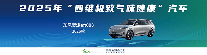 零甲醛”汽车:获奖车型在实际用车环境中,车内甲醛释放浓度达到与大气环境相当的水平,为驾乘者提供更安心的呼吸环境。本次共有13款车型获此殊荣:东风风神L8(2026款)、吉利银河星耀8(2025款)、吉利银河M9(2025款)、领克10 EM-P(2025款)、极氪9X(Ultra版)、奇瑞风云A9L(260超长续航尊贵版)、东风日产N7(2025款)、全新上汽奥迪 A5L Sportback(2026款)、宝骏享境(豪华版)、firefly萤火虫(2025款)、问界M8(增程Ultra版)、问界M7(增程版)、零跑B10(510悦享智驾版)、零跑B01(550激光雷达版)。